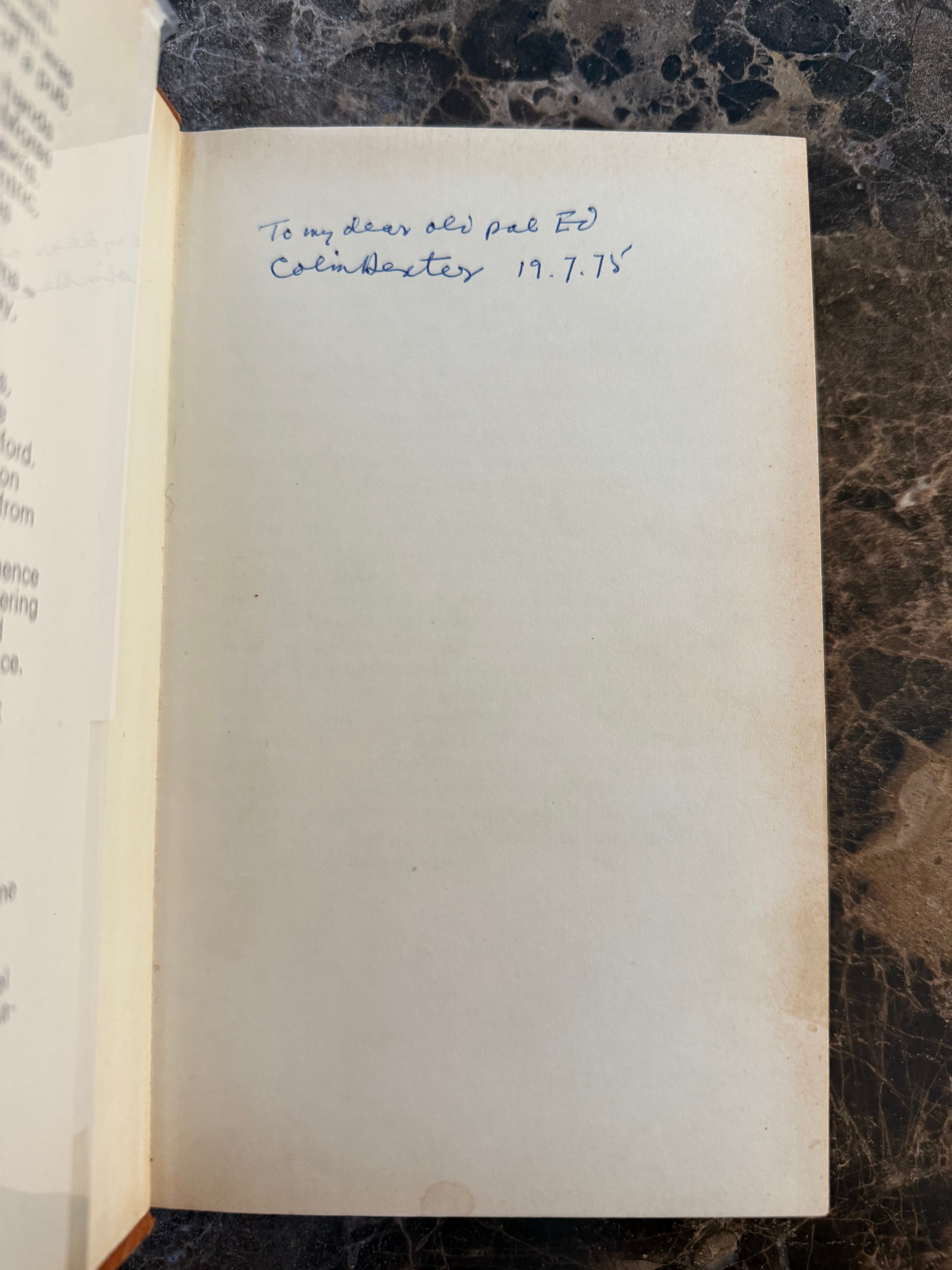 Inscribed presentation copy of Colin Dexter’s debut, introducing Inspector Morse (1975).