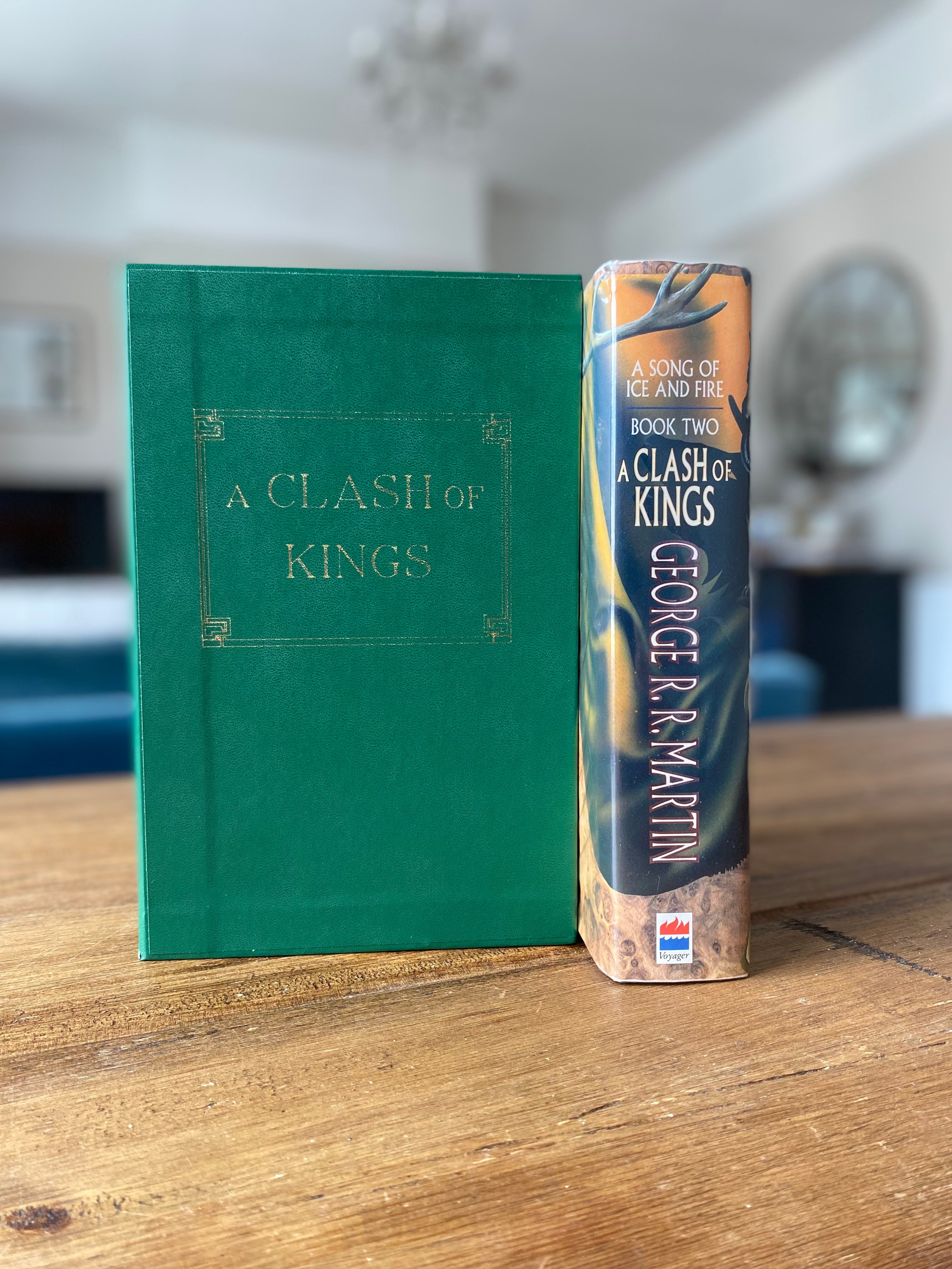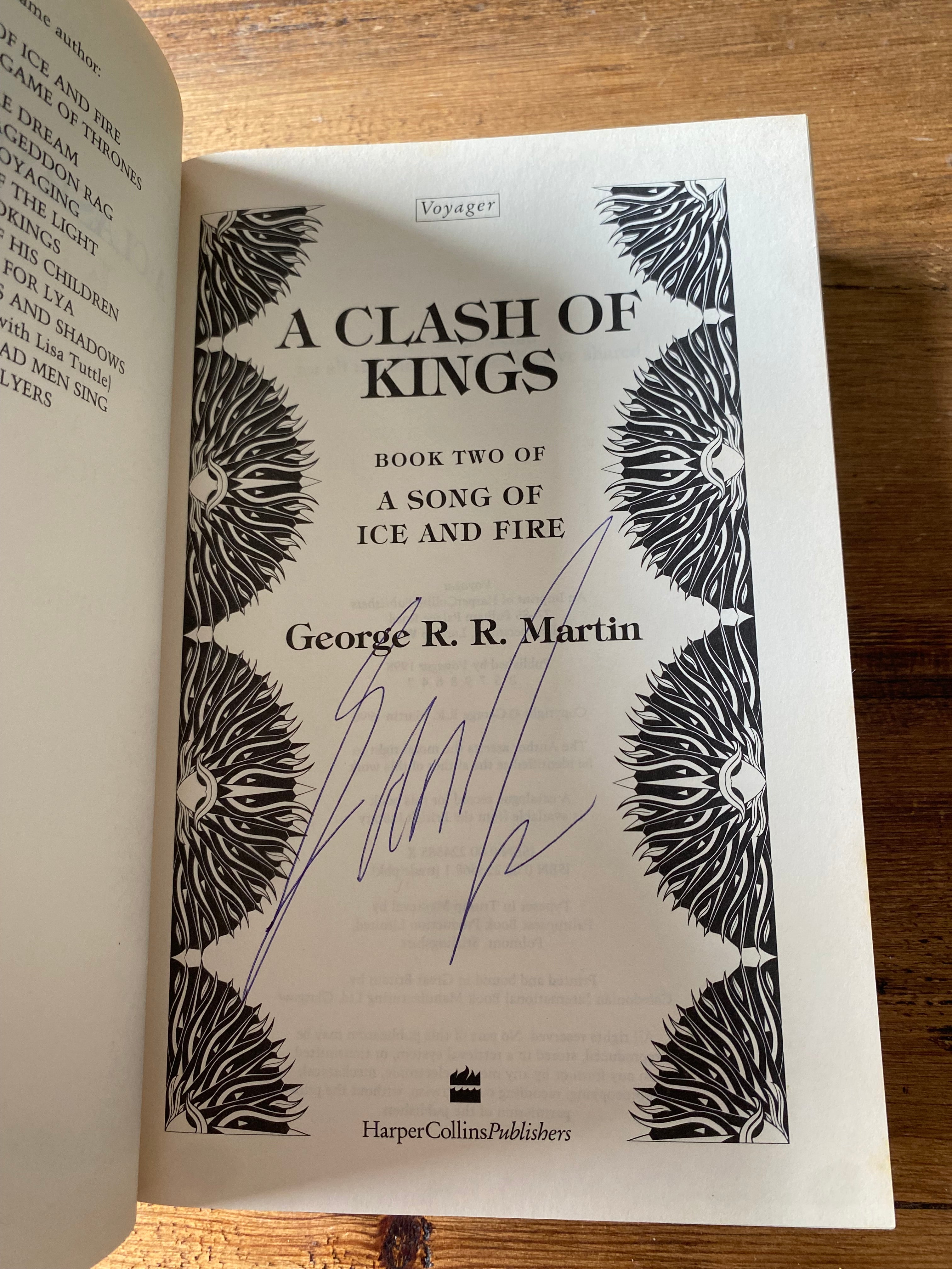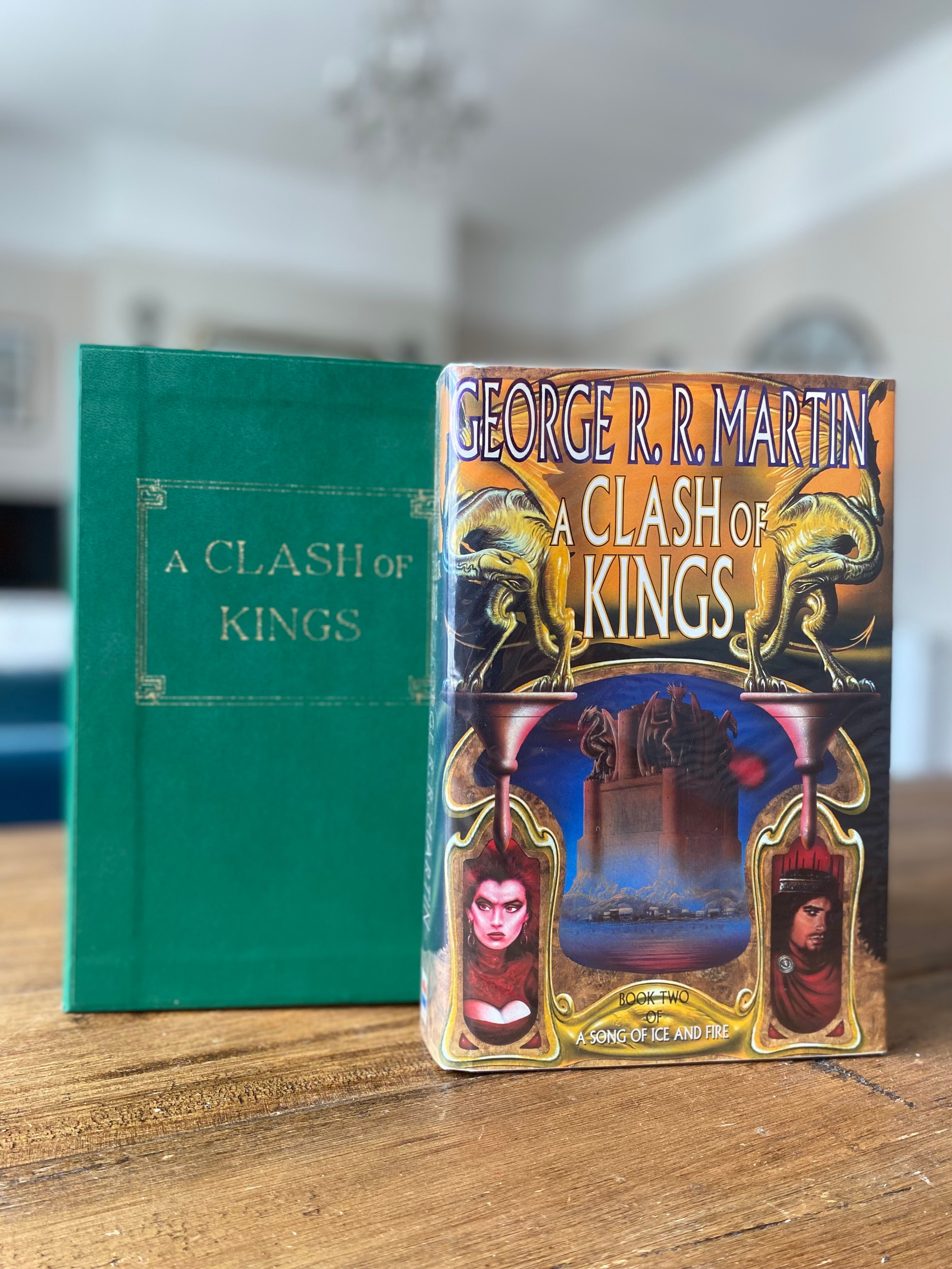 Second printing of the second book in the Game of Thrones series, signed by the author George R.R. Martin. A fine copy with a custom made slipcase.