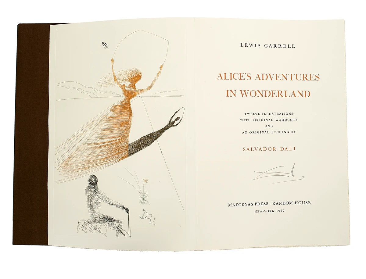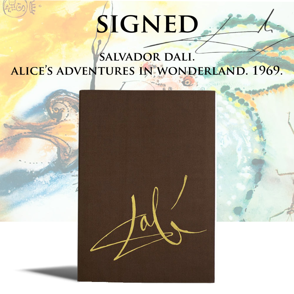 DALI'S ICONIC ILLUSTRATIONS FOR LEWIS CARROLL'S ALICE IN WONDERLAND - ONE OF ONLY 2500 EXAMPLES, HERE SIGNED BY SALVADOR DALI TO THE TITLE PAGE. RARE.