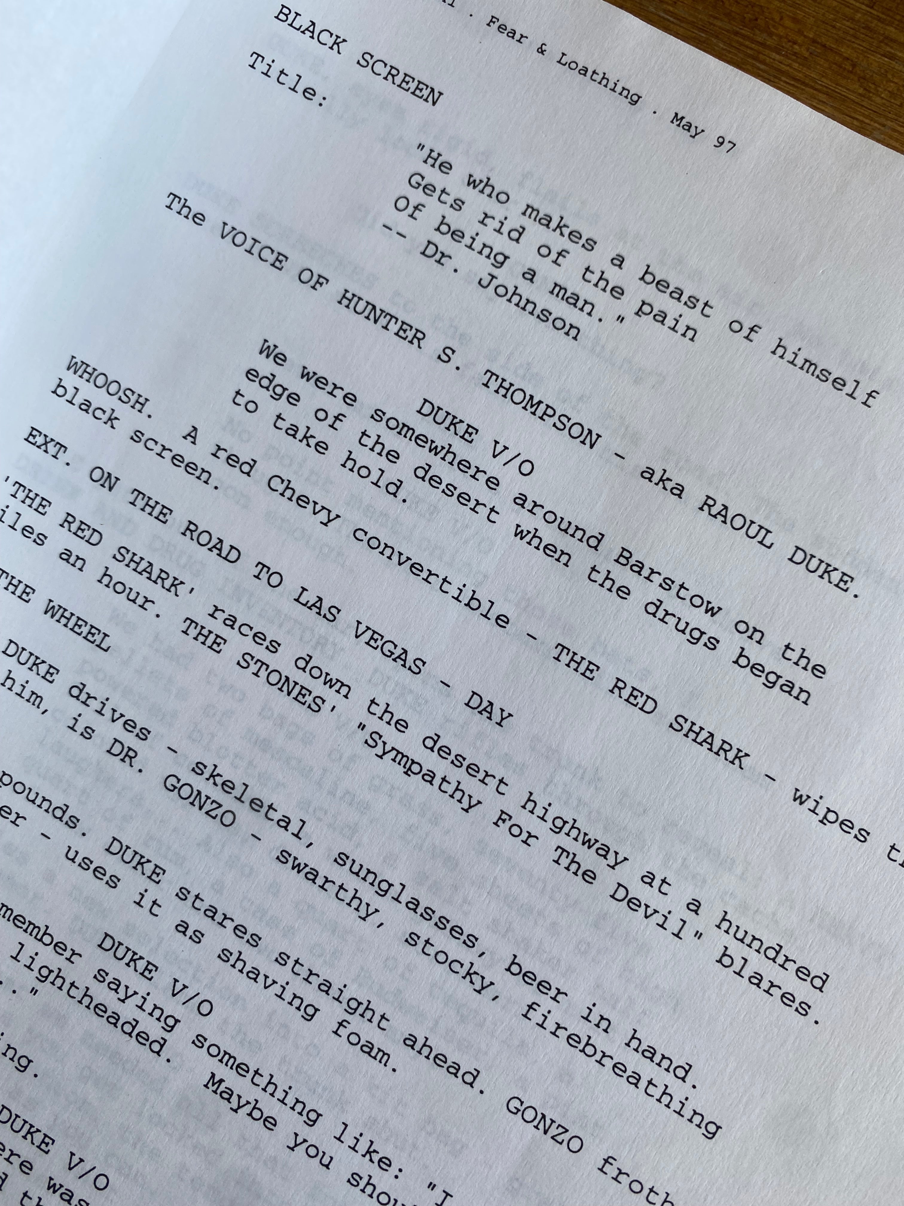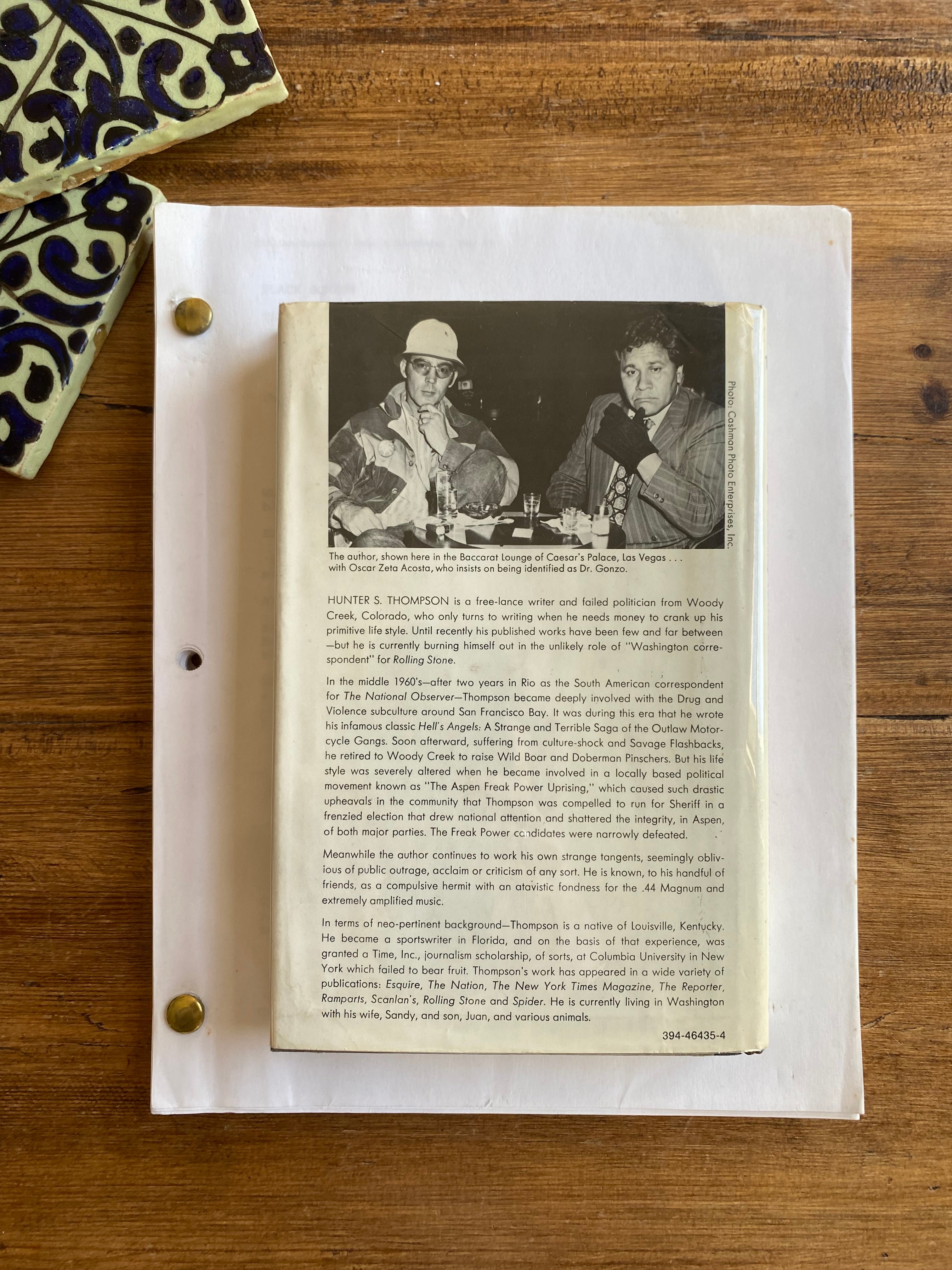 Delighted to present a bumper offering of the first edition of Hunter S. Thompson's Fear and Loathing in Las Vegas, alongside the original production used revised screenplay (script) for the cult classic film of the same name.