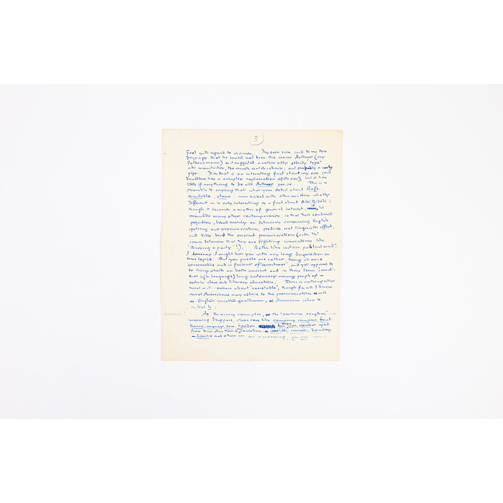 Letter on languages, prejudices that can arise from names and more and a brilliant reference to Tolkien’s son and his father | 2nd October 1947, 6 pages, original handwritten & signed Tolkien letter.