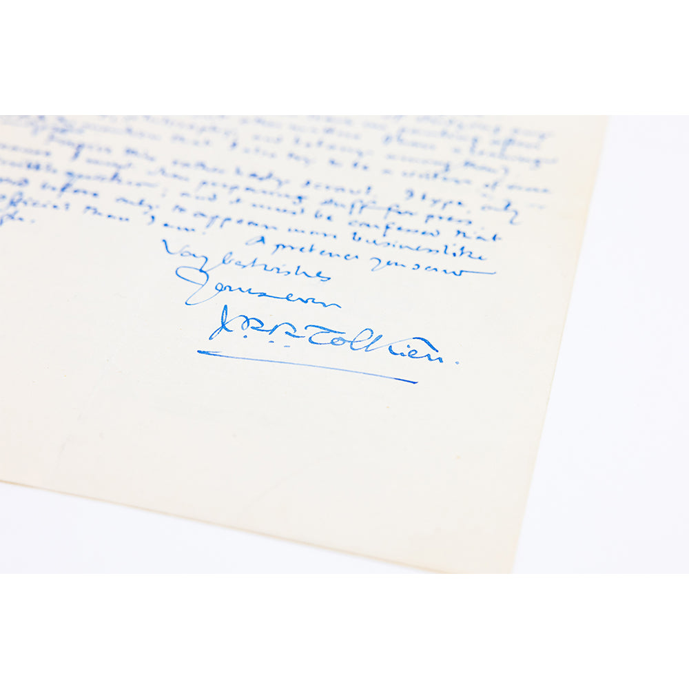 Original Tolkien letter, handwritten and signed, 6 pages, written double sided, 4to, to A.W. Riddle, Merton College, Oxford. One-fold to each page down the middle. An excellent example with a stunning signature. Near fine to fine.