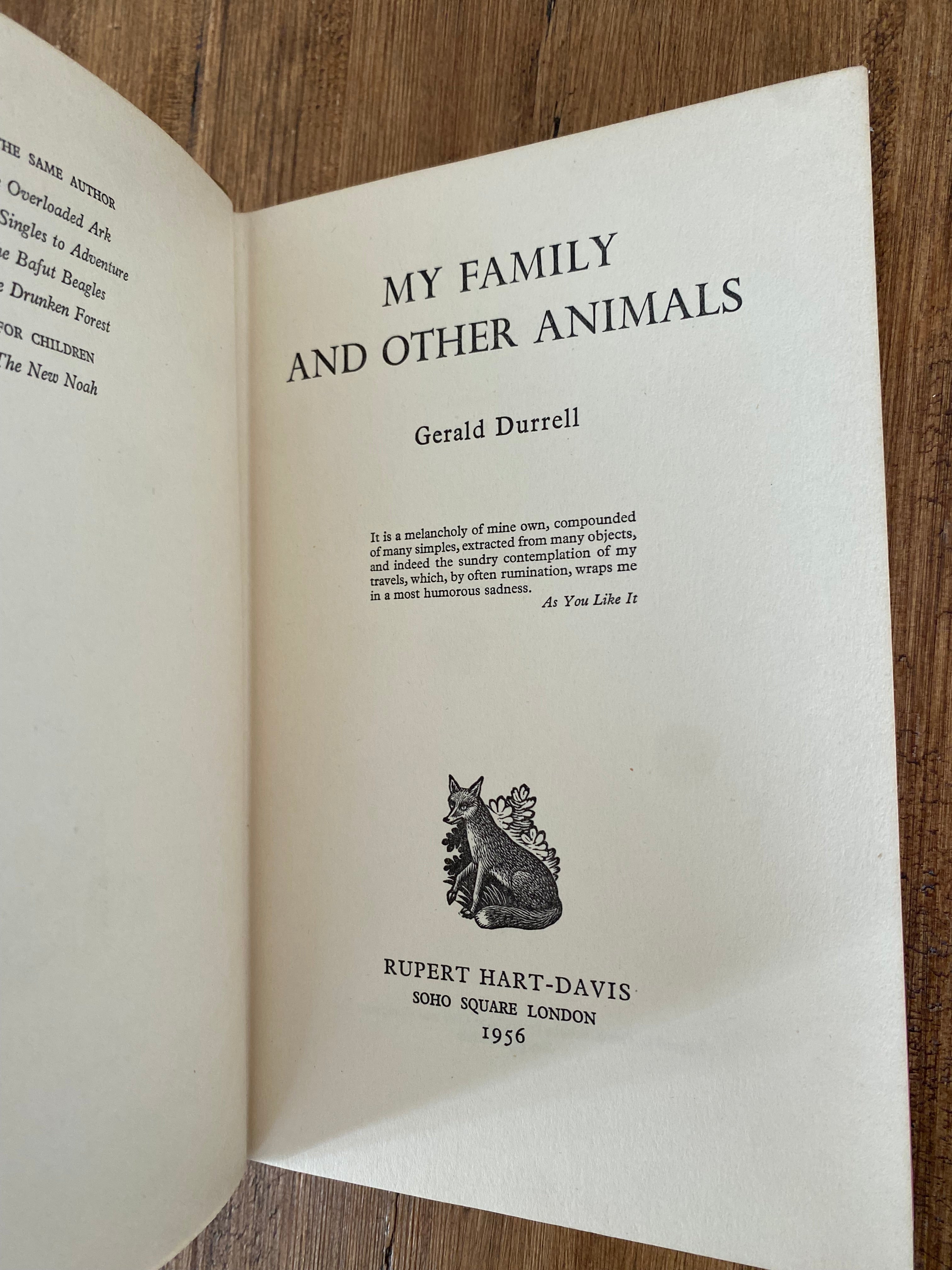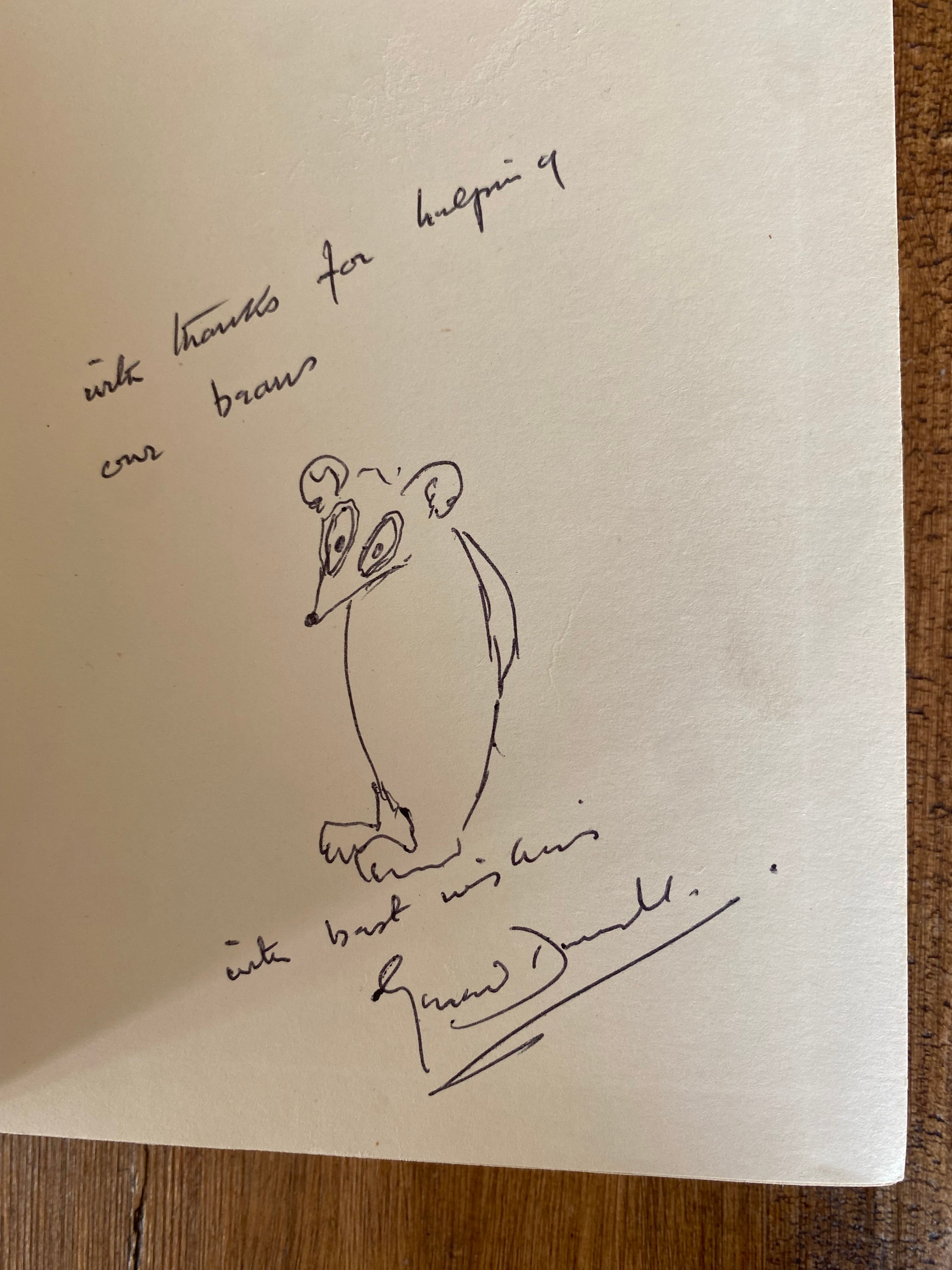 My Family and Other Animals | 1956, first edition, signed presentation inscription from the author with a drawing of a bear.