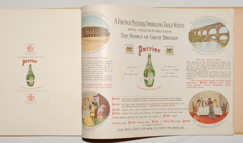 First and only edition, large, complete folio containing twelve colour illustrations with captions of the laws of the game, produced for Perrier Limited of London, with Perrier advertisements throughout and to rear page. Original hardback pictorial boards. An excellent example with only minor wear.