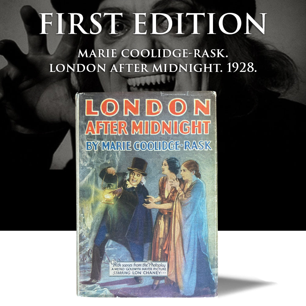 This near-fine first edition of London After Midnight from 1928 offers a rare opportunity for movie enthusiasts and vampire fans alike to experience the earliest American vampire film as this photoplay is illustrated with eight scenes from the motion picture.