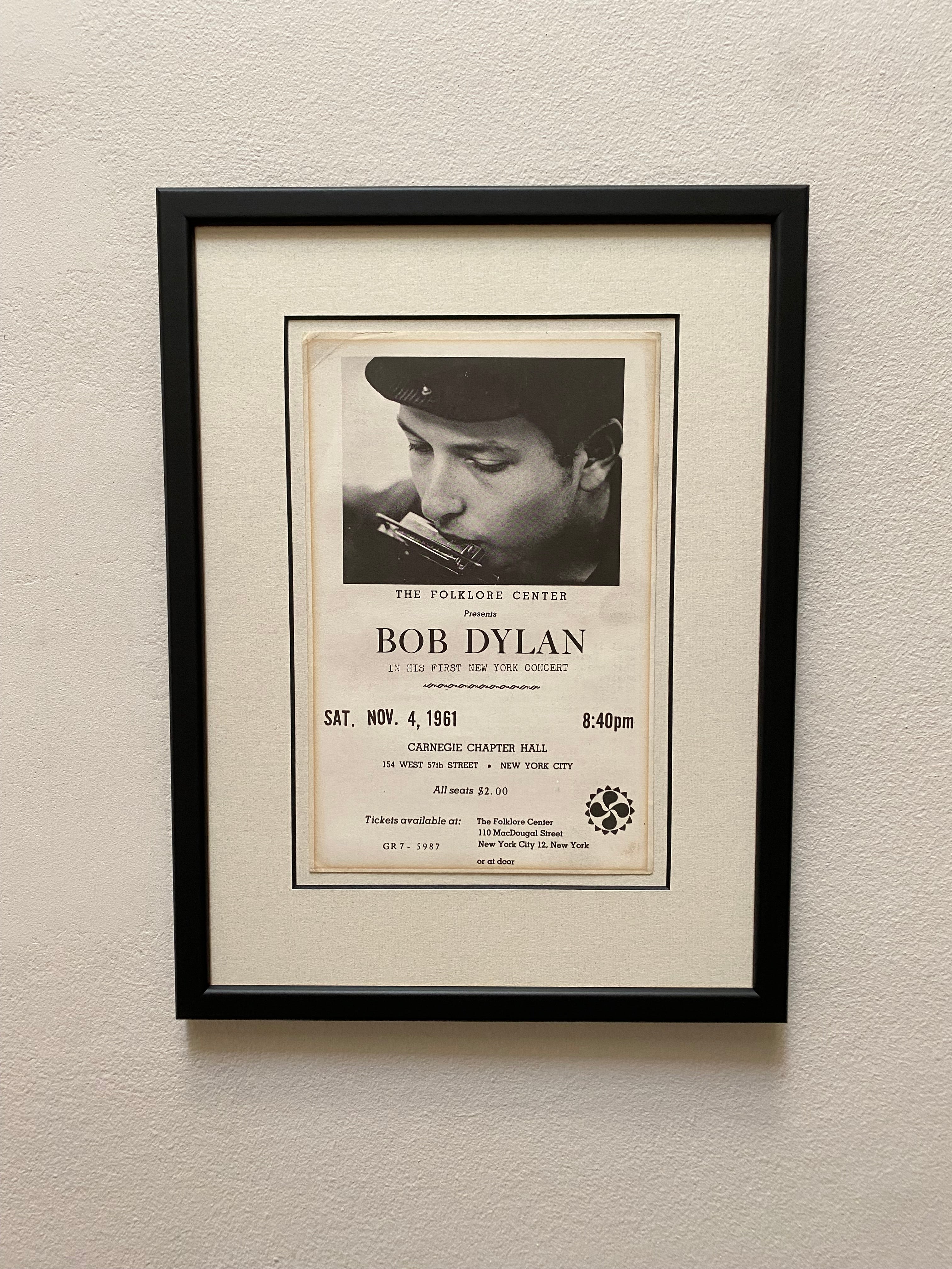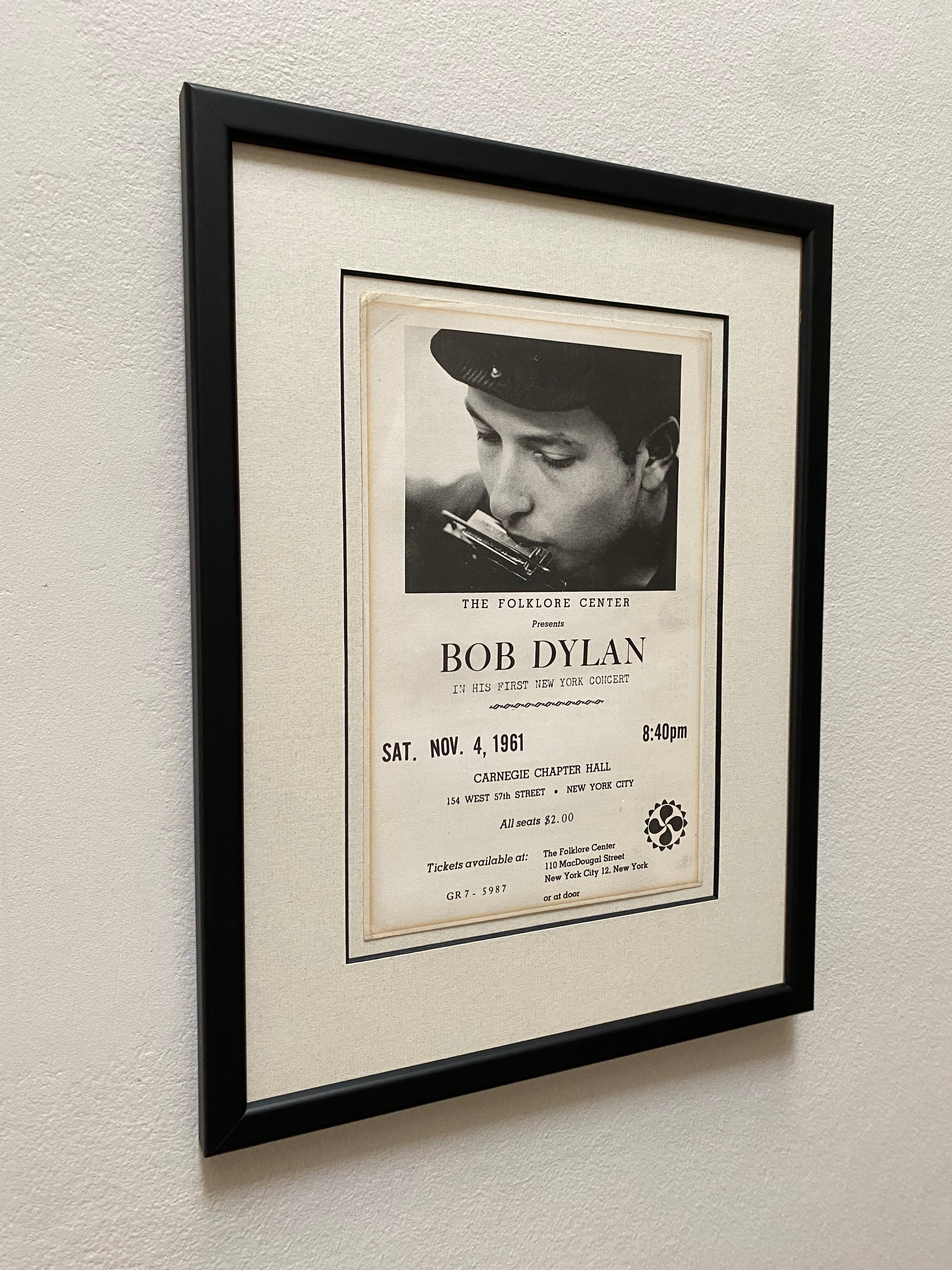 Rare Handbill For Bob Dylan's First Concert, Carnegie Chapter Hall | 1961, framed.