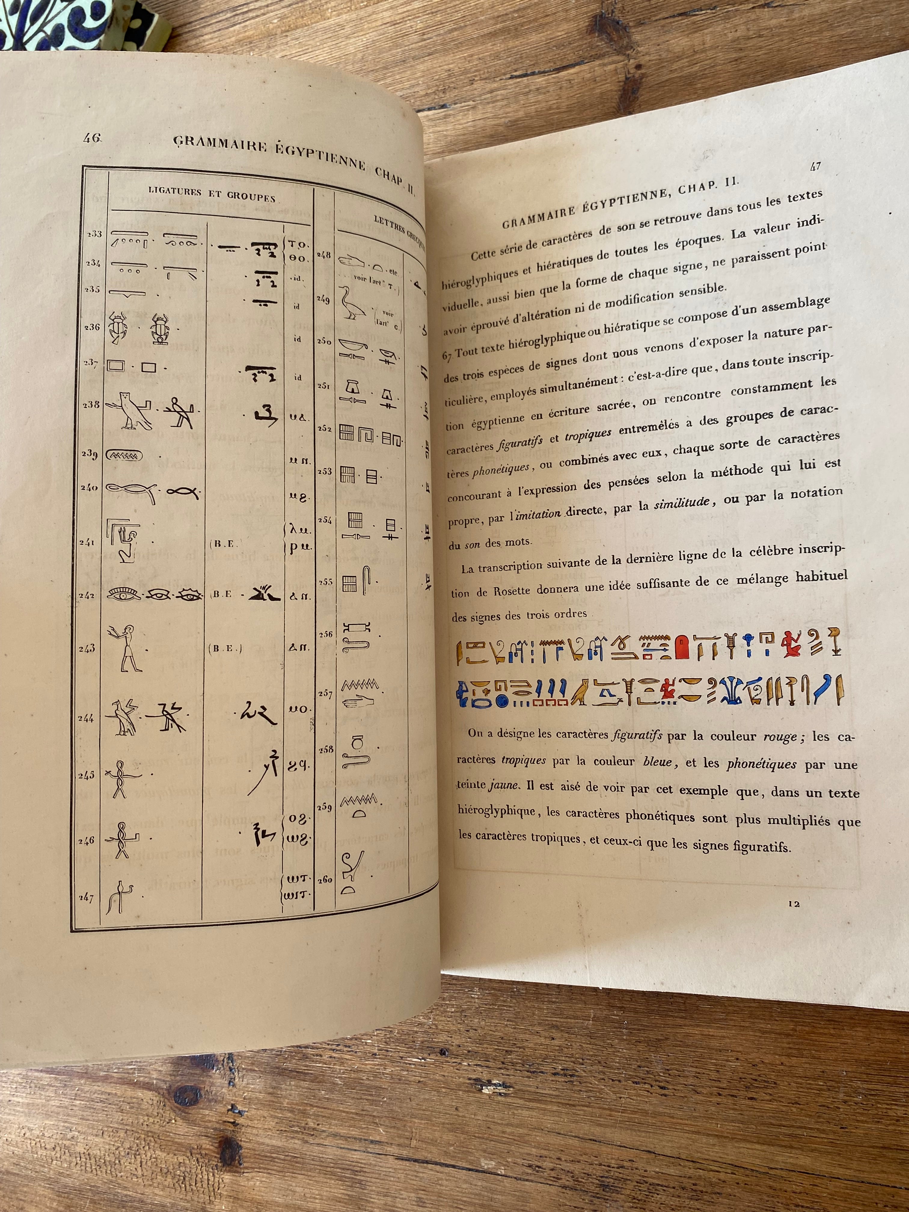 Grammaire Egyptienne | 1836 [1841], first edition of the first ever work to translate Hieroglyphs, in the original publishers wrappers.