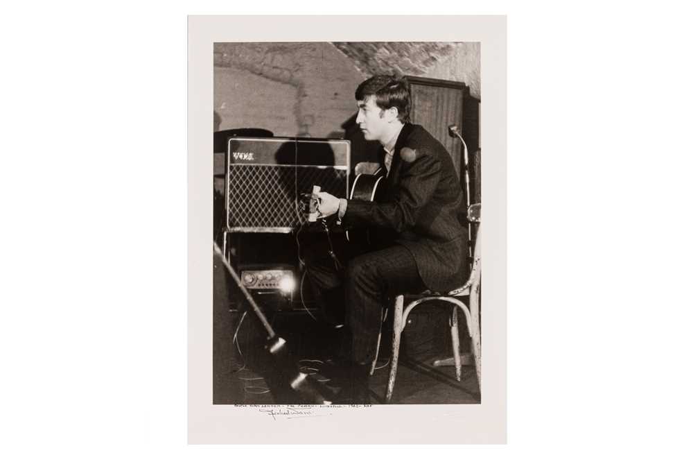 John Lennon rehearsing before The Beatles final show at The Cavern Club | 1963, silver gelatin print, signed, titled, dated, by the photographer, framed.
