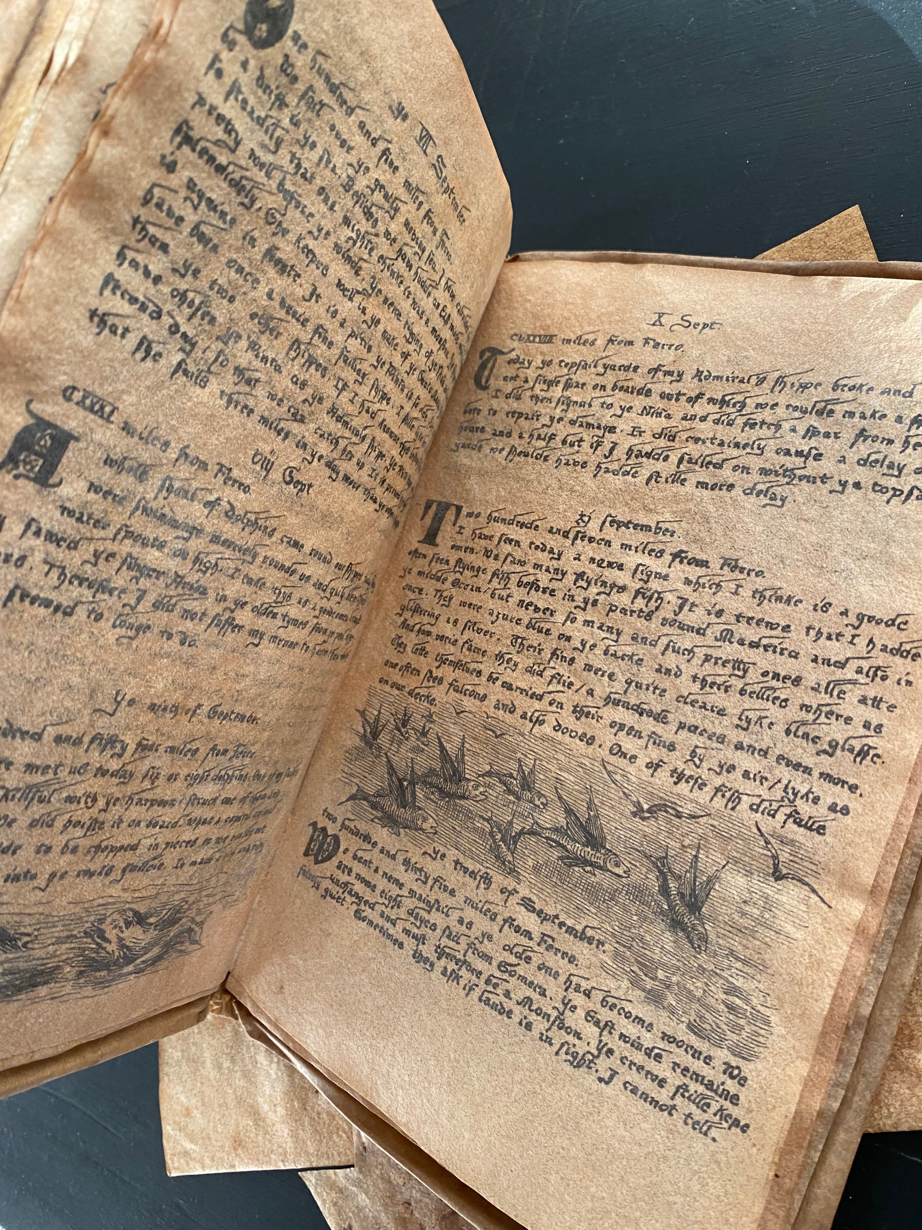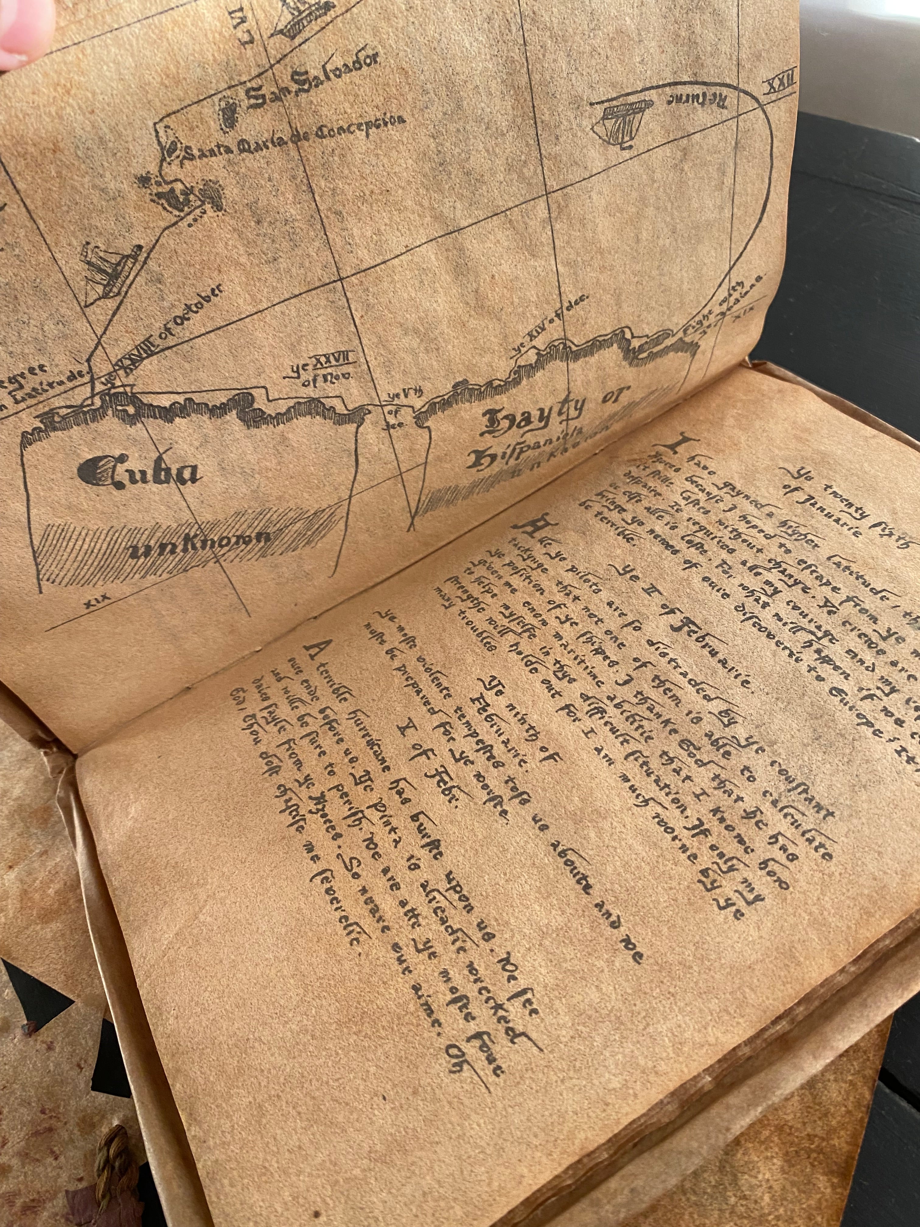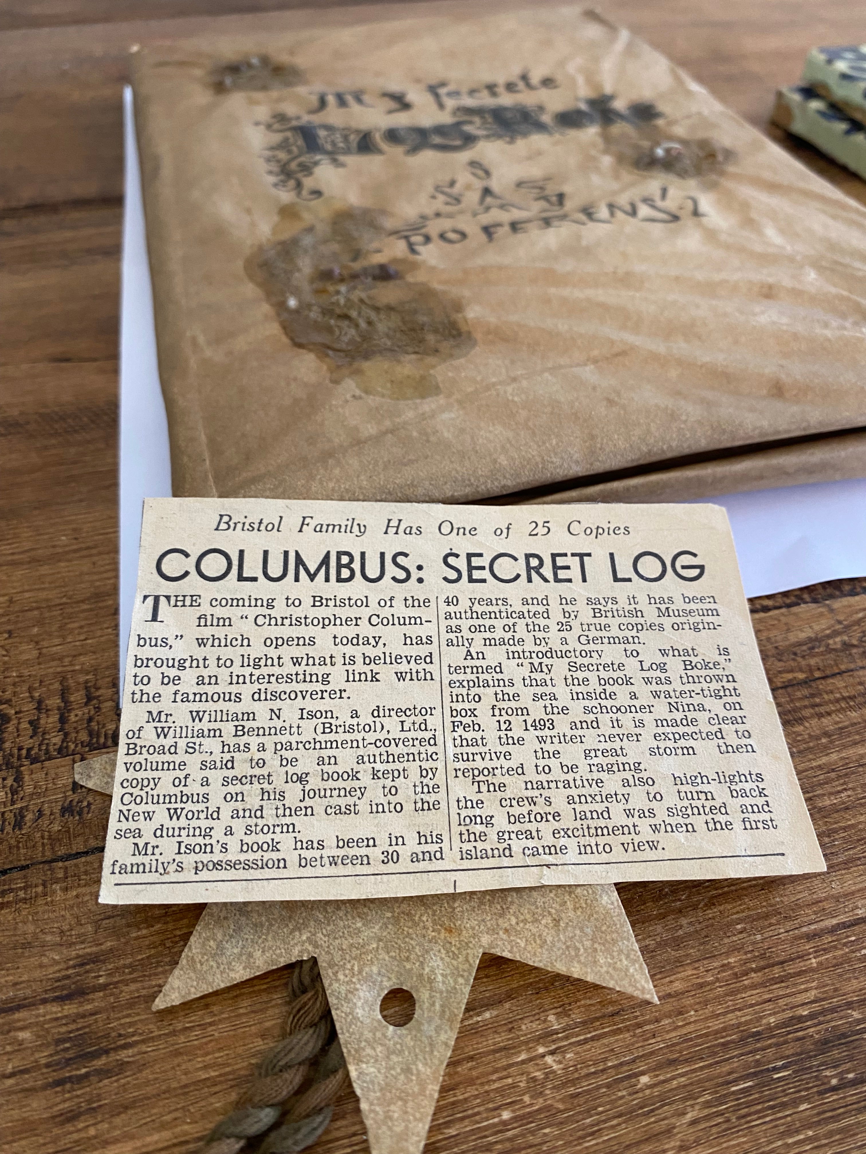 This remarkable diary, adorned with shells and sand, is one of the most peculiar items in the Bayliss Rare Books trove. Passed down through time, it is believed to be the long-lost diary of Christopher Columbus, tossed out to sea during a storm many years ago, only to be found by the coast of Pembrokeshire centuries later.....