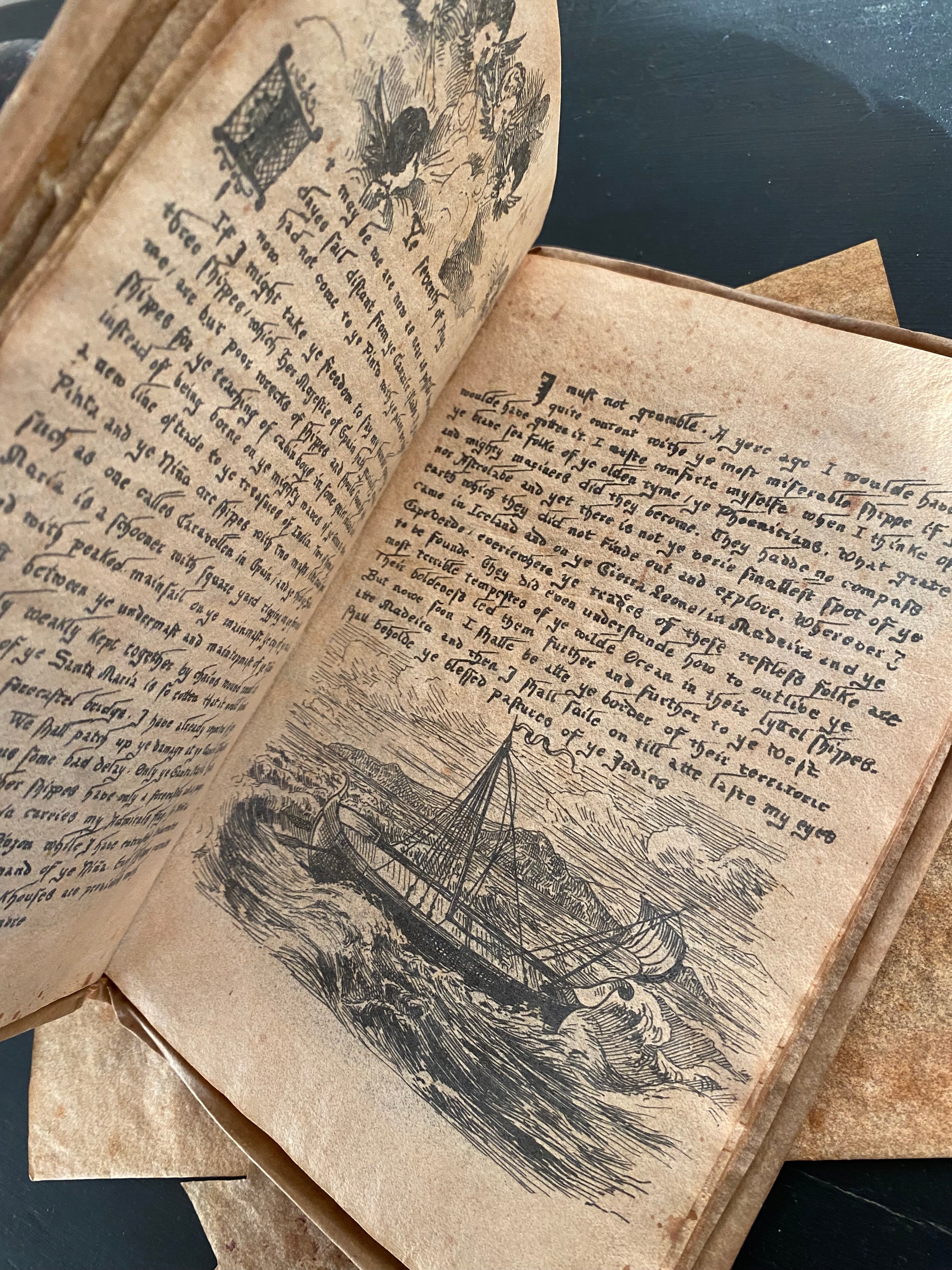 Worthy of note is that it is actually a renowned literary forgery! Written in an old-fashioned English and with paper and binding crafted to look as if it had been weathered by the sea., it is a rare work with only a handful known to exist.