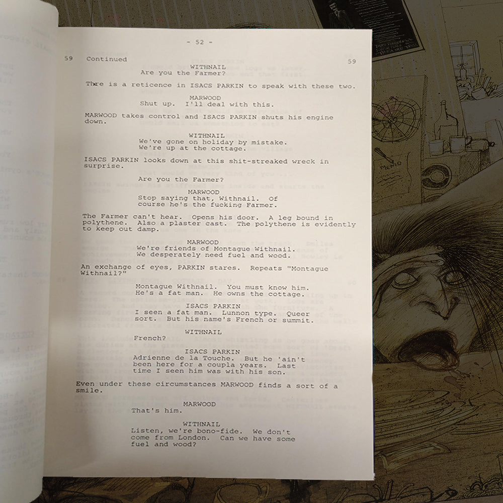 Rare script for the iconic and cult classic movie. Scripts from Withnail and I rarely surface on the market. A fine example, 123 pages in blue paper wrappers. As a personal favourite of mine, I cannot recommend this enough.