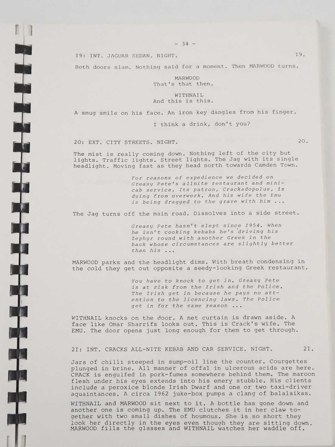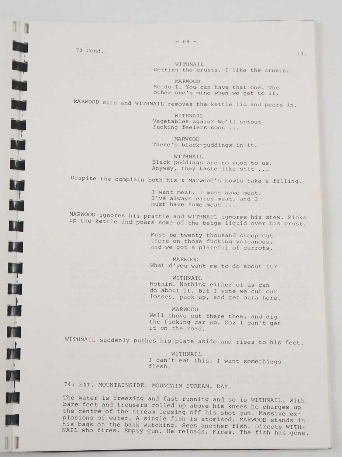 Delighted to be offering a signed first draft script, with alternate ending, of the greatest cult film ever made, Withnail And I. A film that certainly had more than a little influence in my school expulsion at 16!